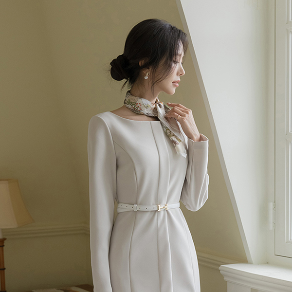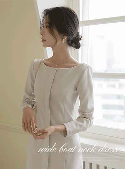 Wide Boat Neck Cutting Slim Cheese Span Dress