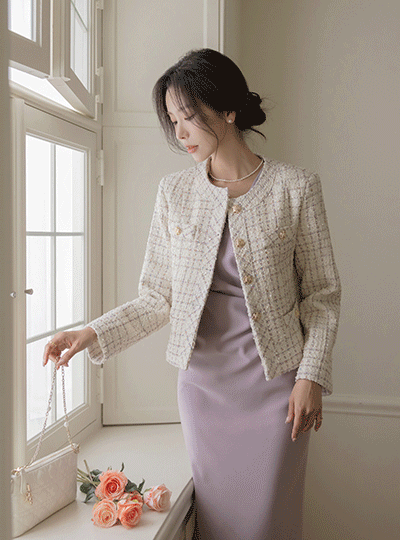 Luxury Gold Button Wool mix Tweed Jacket