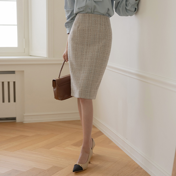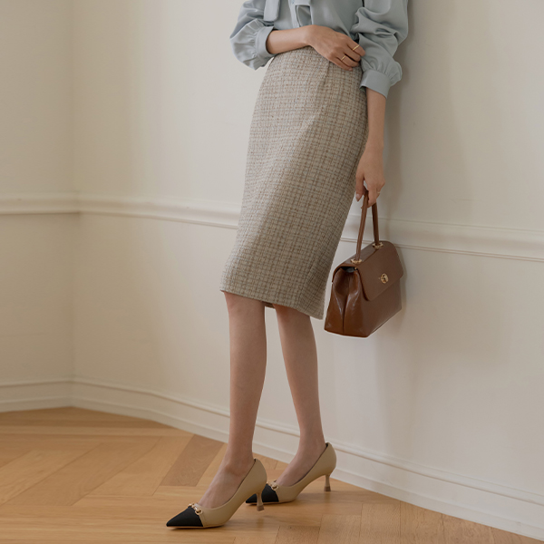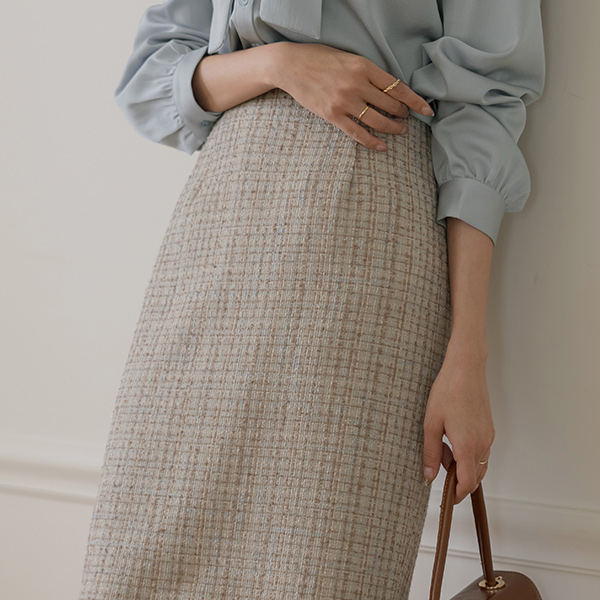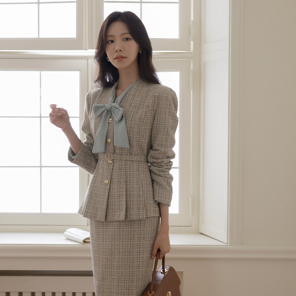 아몬 Check Peplum Tweed Set-up Jacket