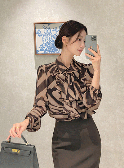 Elegance Printing Patterns Frill Tie Blouse