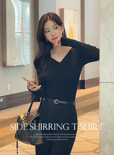 Side Shirring Wrap Style Span T-shirt