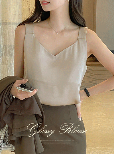 Satin Glossy Heart Neck Sleeveless shirts Blouse