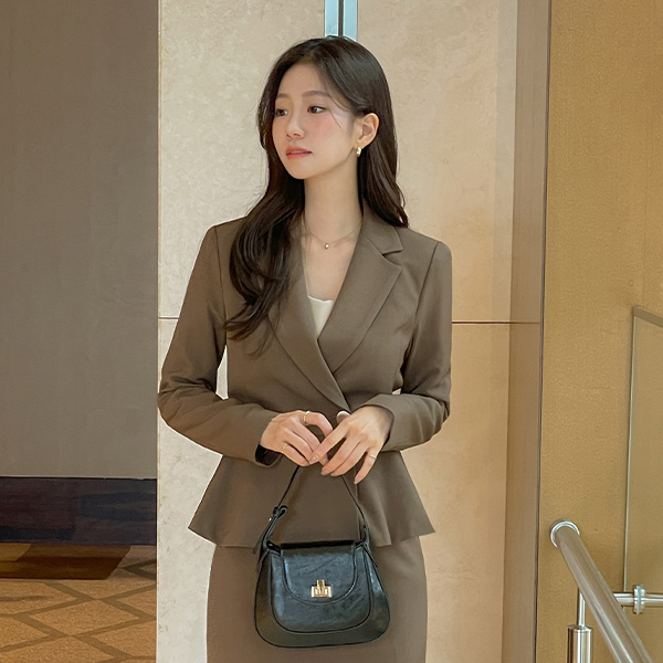 Cool Double Gold Button Span Peplum Set-up Jacket