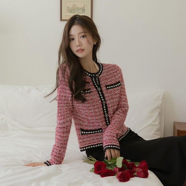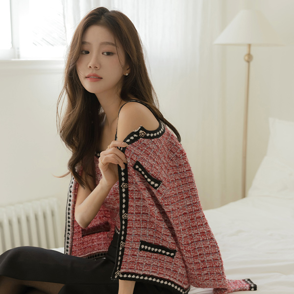 pearl Tweed Check Sleeveless shirts&Cardigan SET