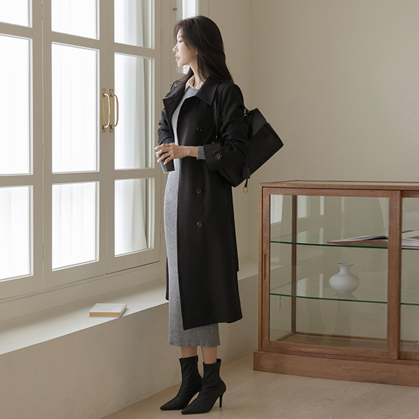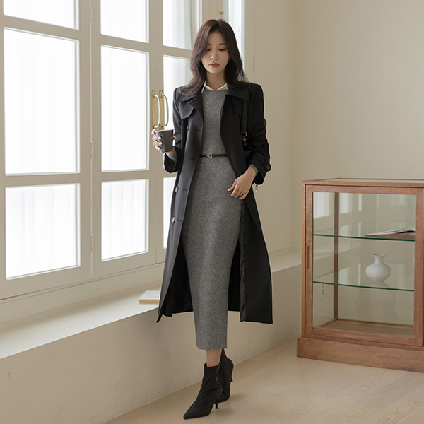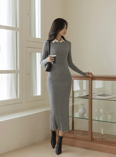 Back Slit Slim Line Corduroy Knit Dress