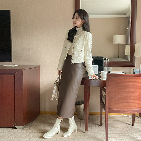 Back Slit Eco Leather H-line Skirt