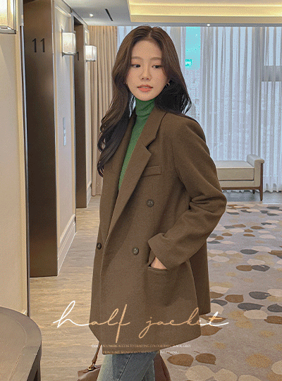 Cozy Double Button Wool Basic Harp Jacket