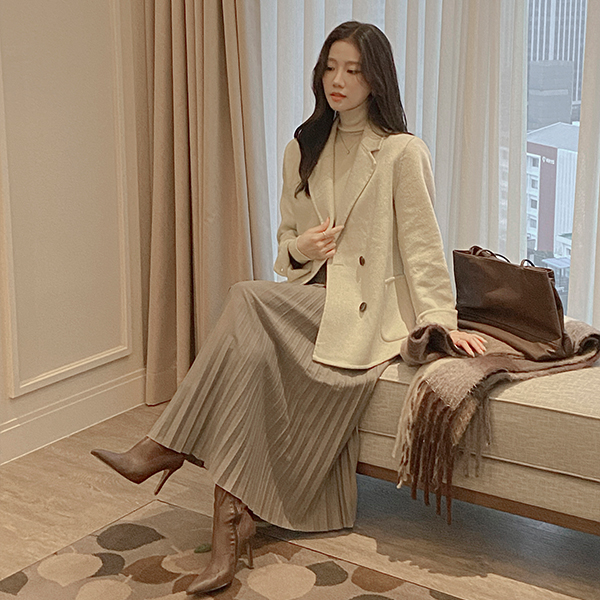 Feminine Wool&Biscos Banding Pleats Skirt