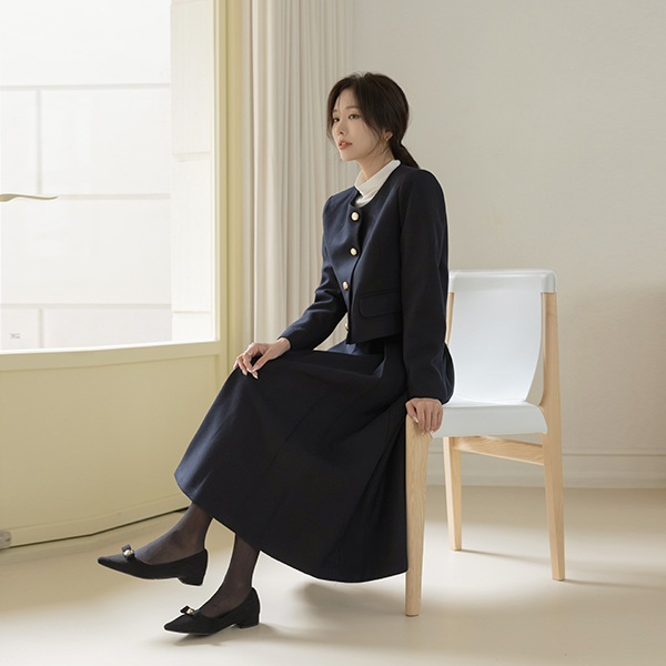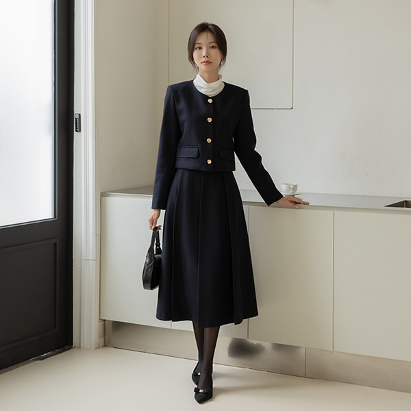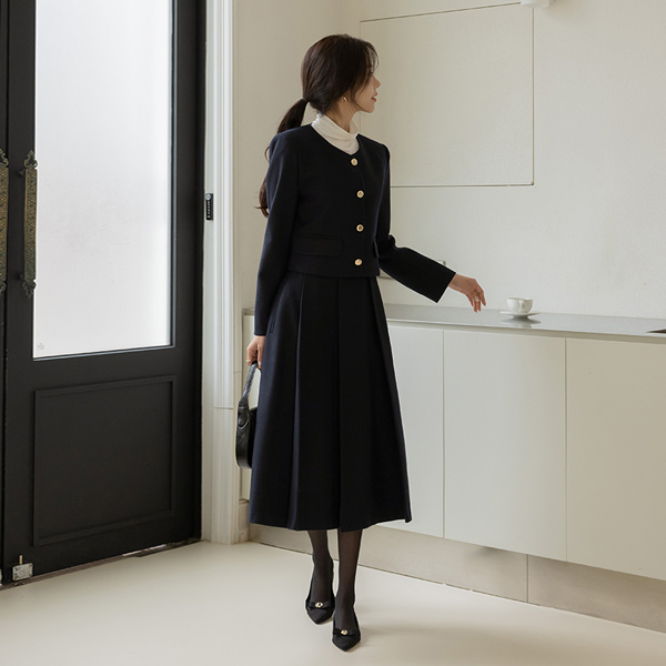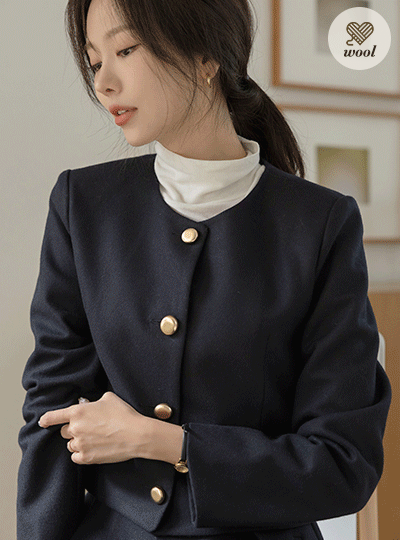 셀리 Raund neck Wool Set-up Jacket