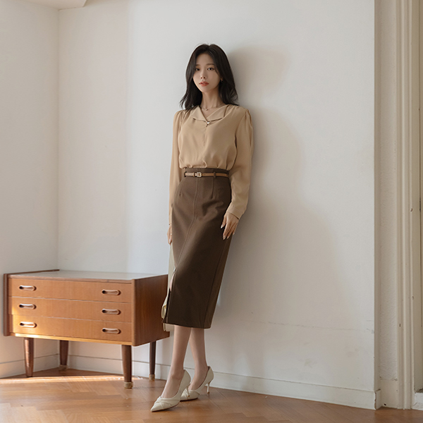 미즈 Open-Neck Pearl Blouse