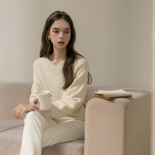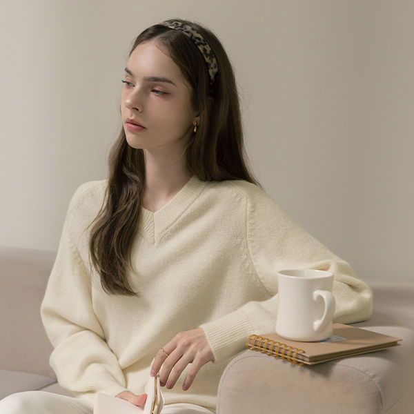 Pastel Color slender VNeck Wool Knit