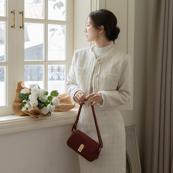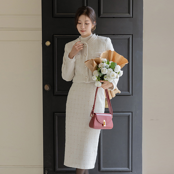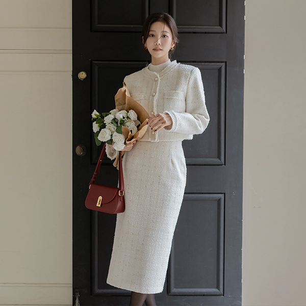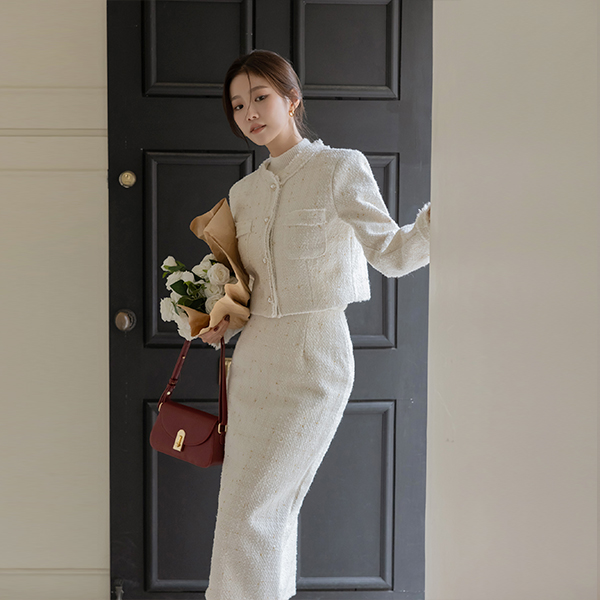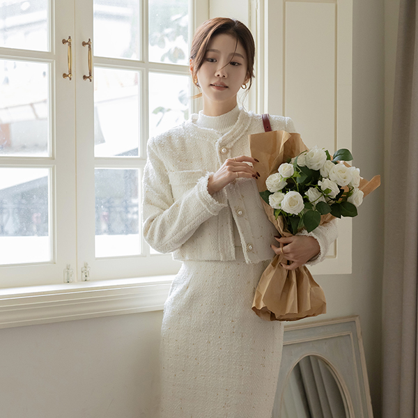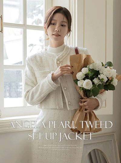 안젤라 pearl Tweed Tassel Set-up Jacket