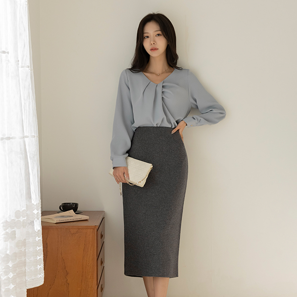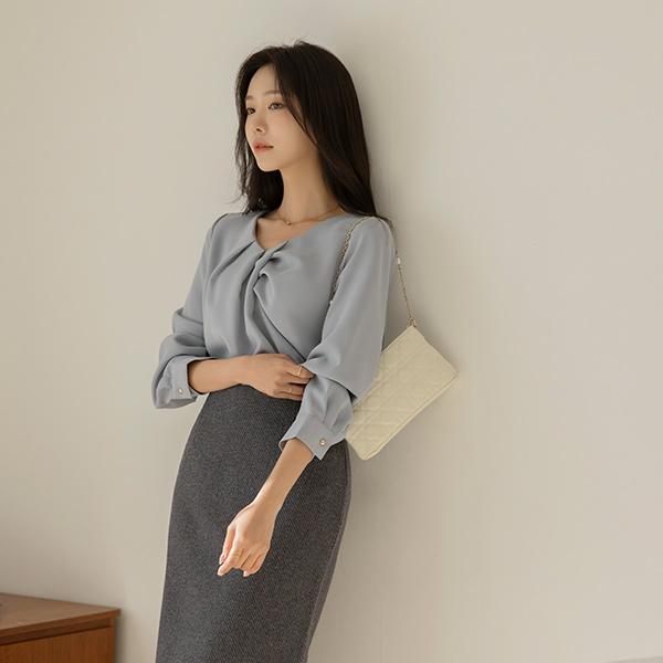 로미 Shirring VNeck Soft Blouse