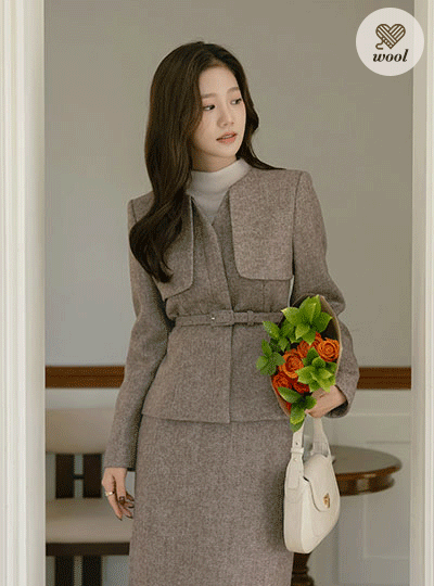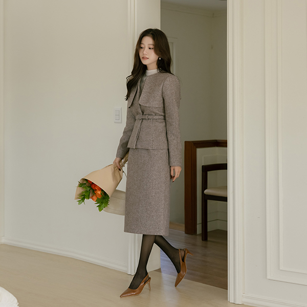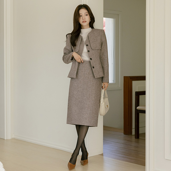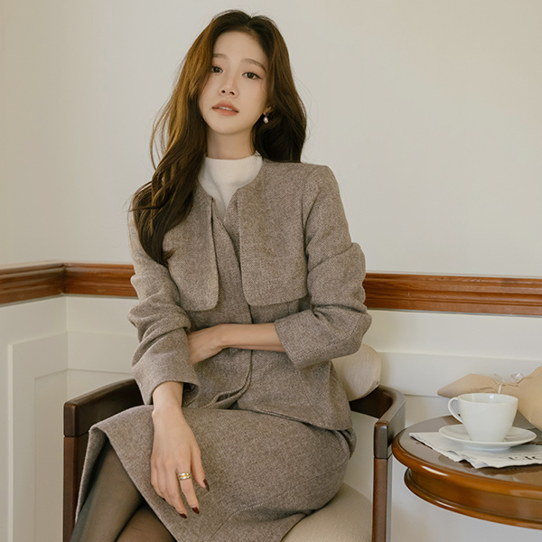 Herringbone Thick Wool Hidden Button Set-up Jacket