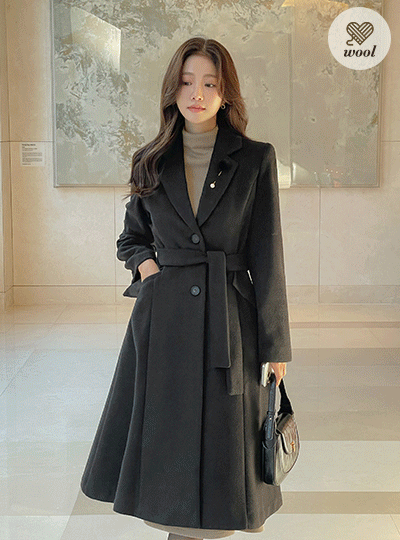 Brooch Belt (Set) A-line Wool Quilting Coat