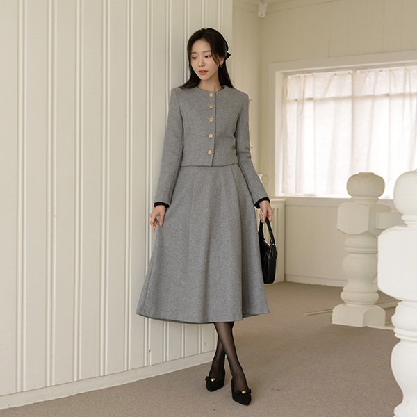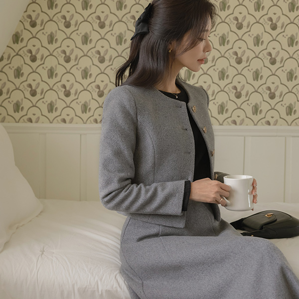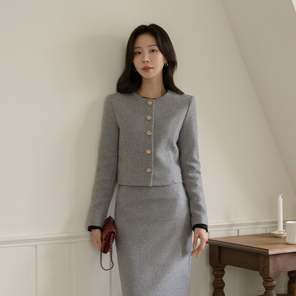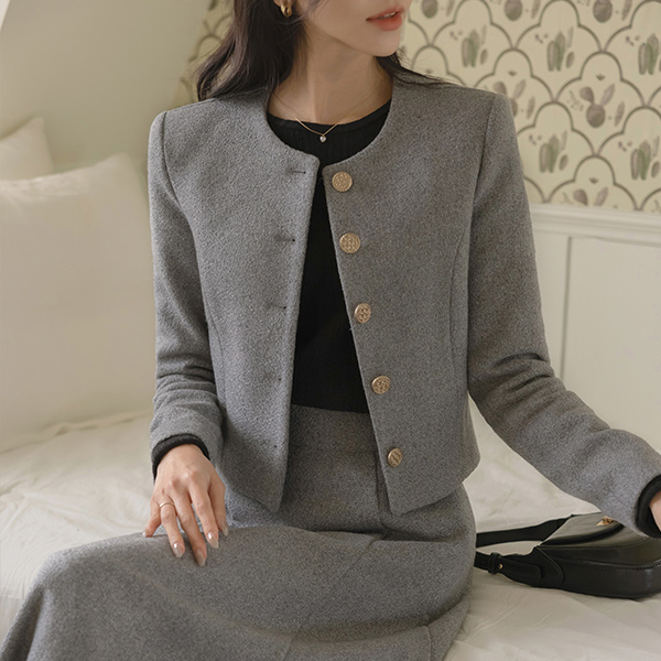 Berry Thick Wool Tweed Set-up Jacket