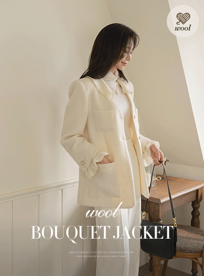 Two-way Frill Neck Wool Harp Bouclé Jacket