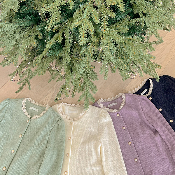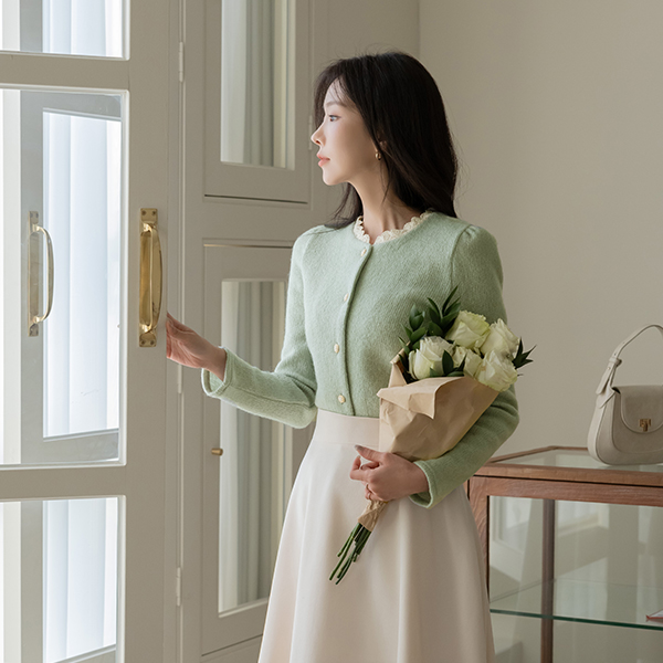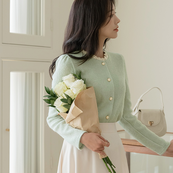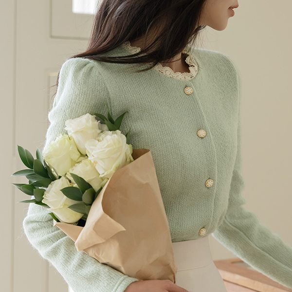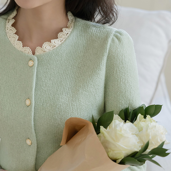 Romantic Lace Raund neck Wool Knit Cardigan