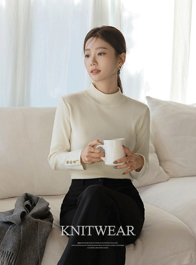 Sleeves Button a half-turtleneck line Knit