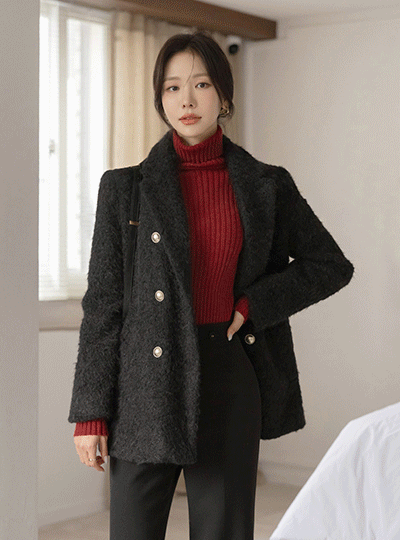 Winter Bouclé Double Button Harp Coat (quilted lining)