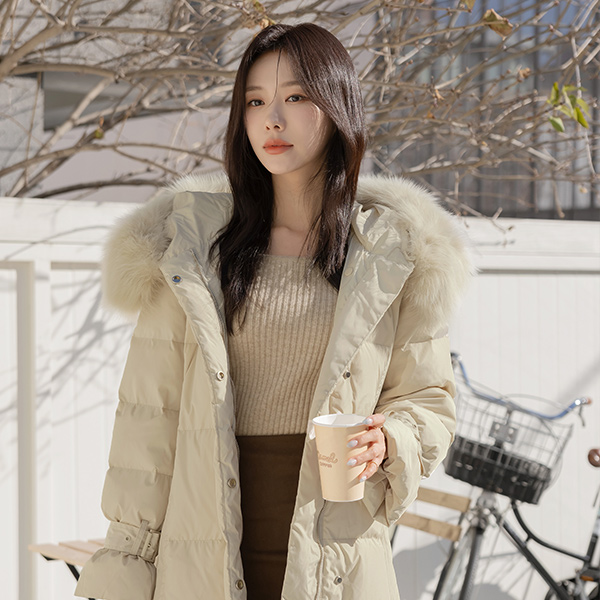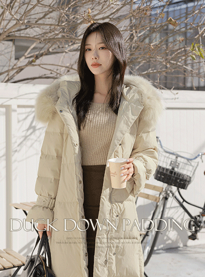 Real Fox-Fur Duck Down Long-Padded Jumper