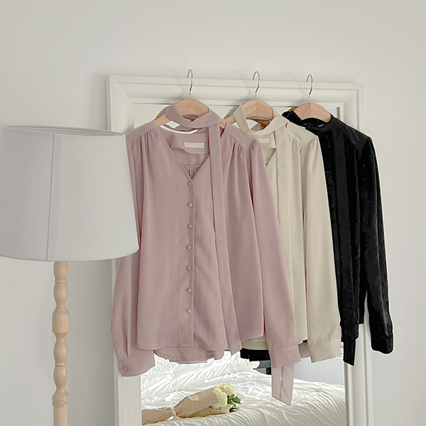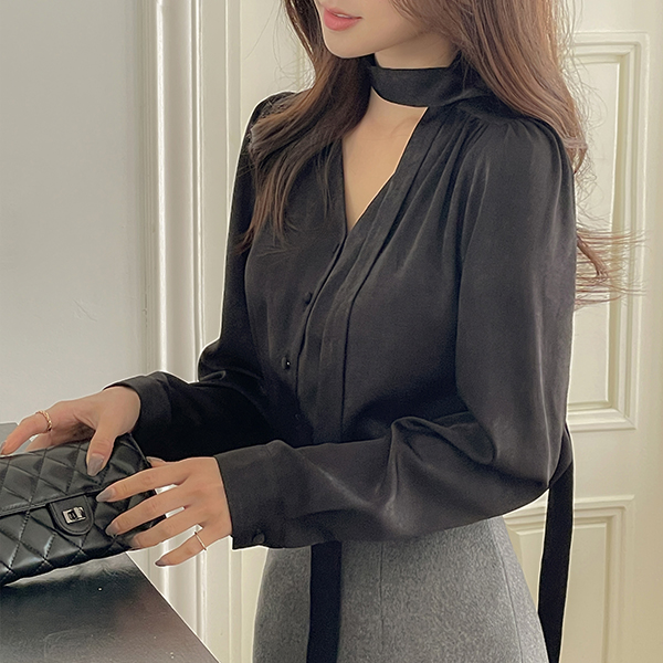 Shining Satin Tie Neck Blouse