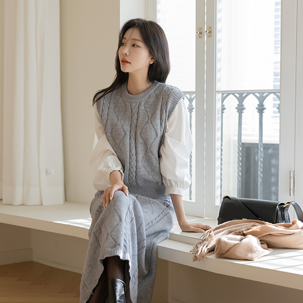 Shirt Color Combination Two-piece Knit Set-up