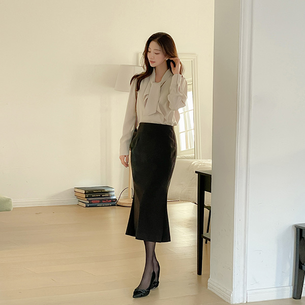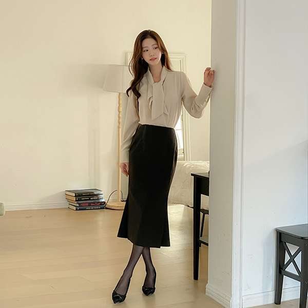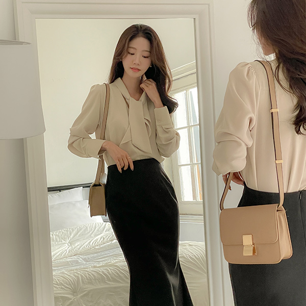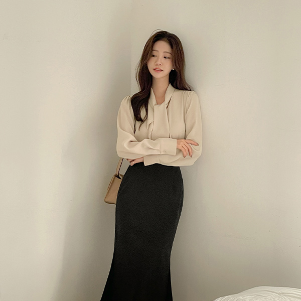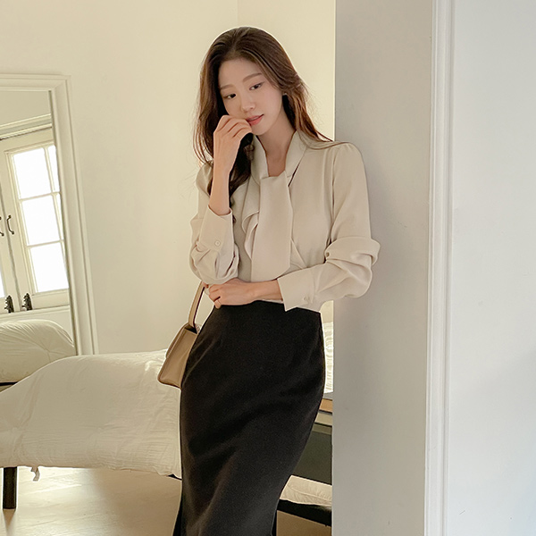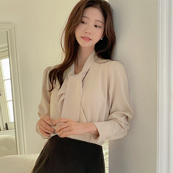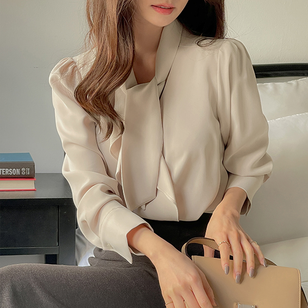 로맨스 Ruffle Tie Neck Creamy Blouse