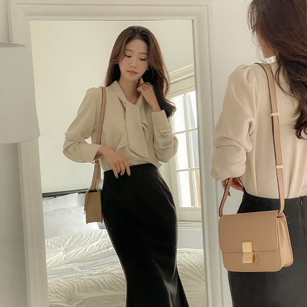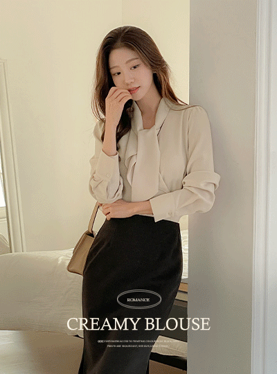 로맨스 Ruffle Tie Neck Creamy Blouse