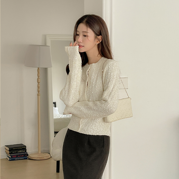 Shining pearl mix Thick Knit Cardigan
