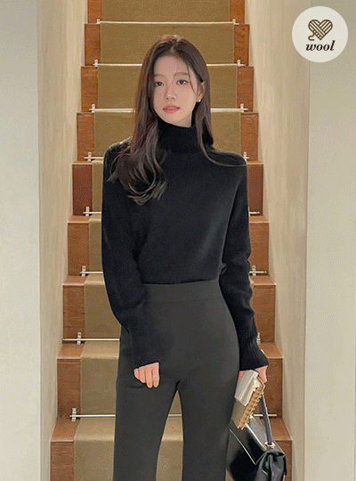 Whole Garment Wool100% Turtleneck Knit