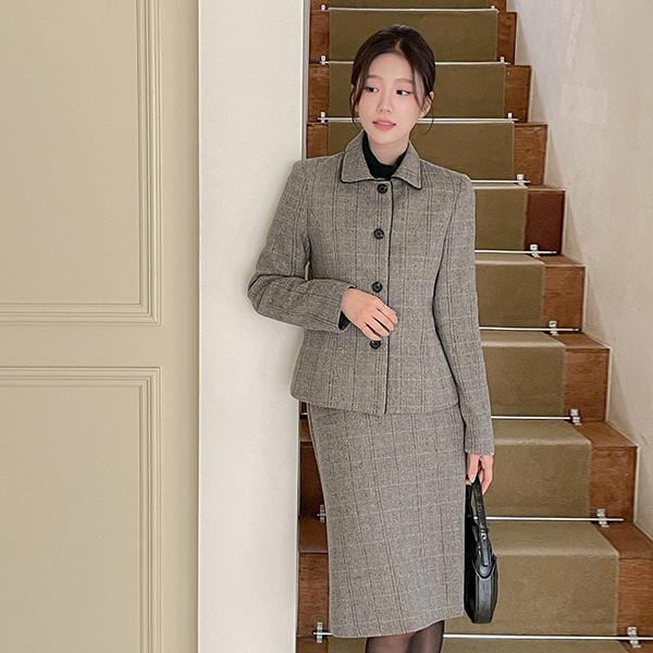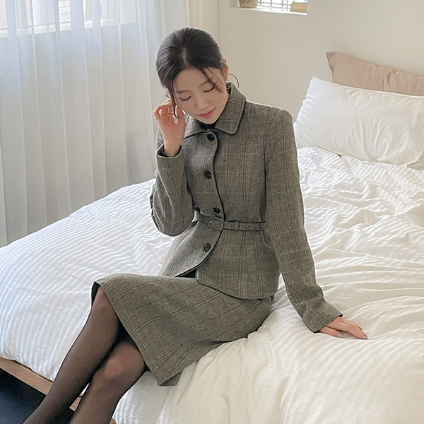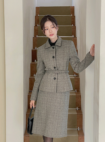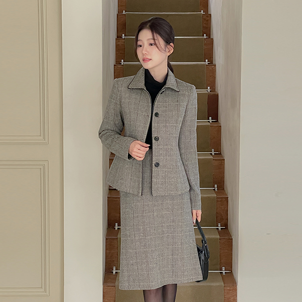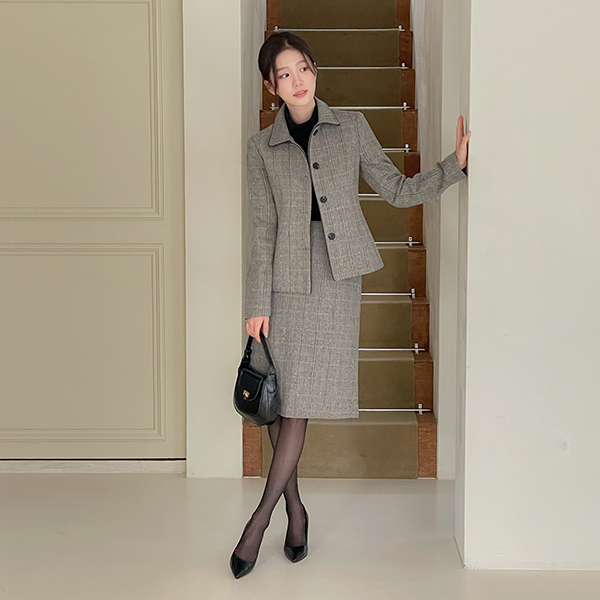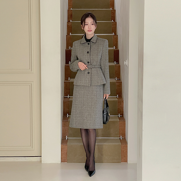 리안 Herringbone Wool Set-up Skirt
