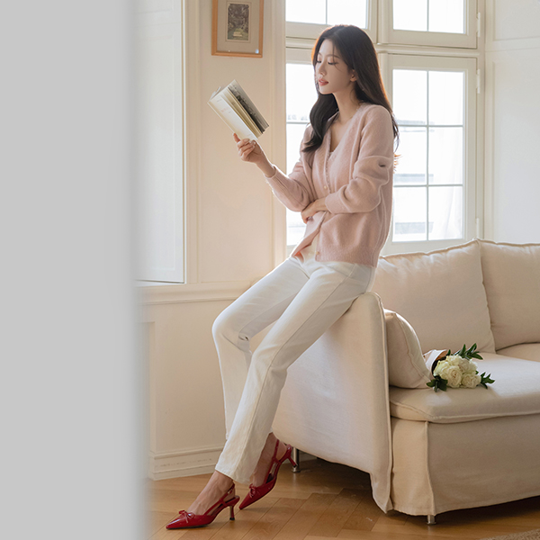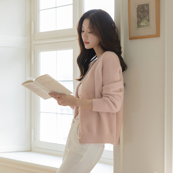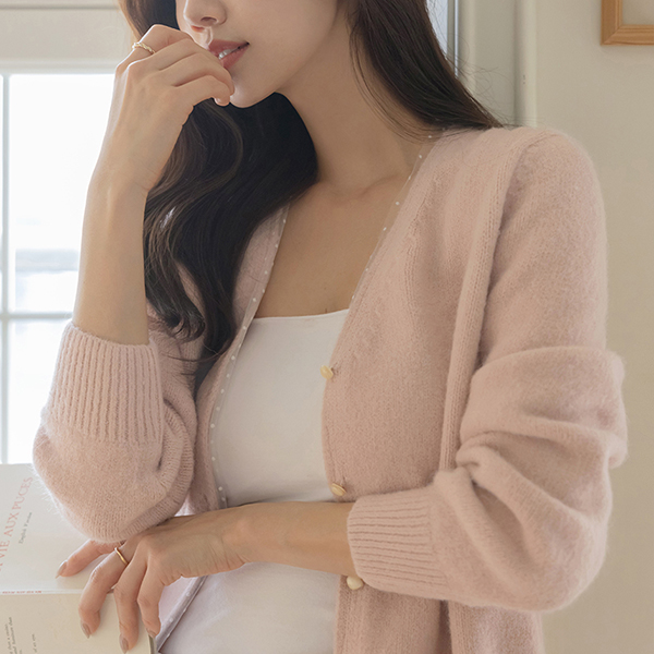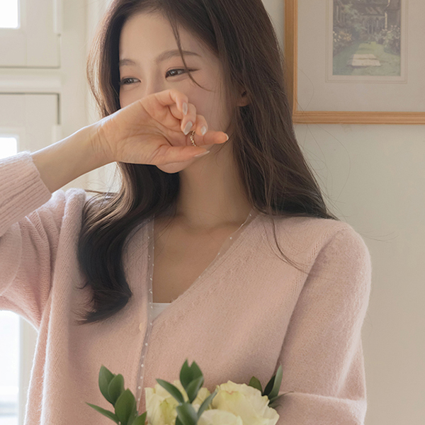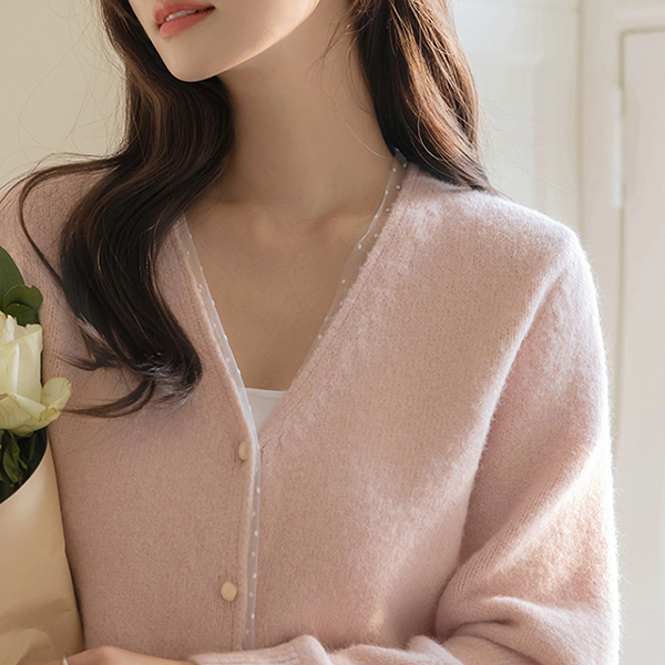 Dot Lace Color Combination V-neck Wool Cardigan