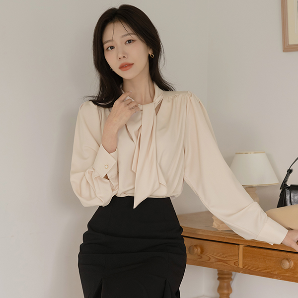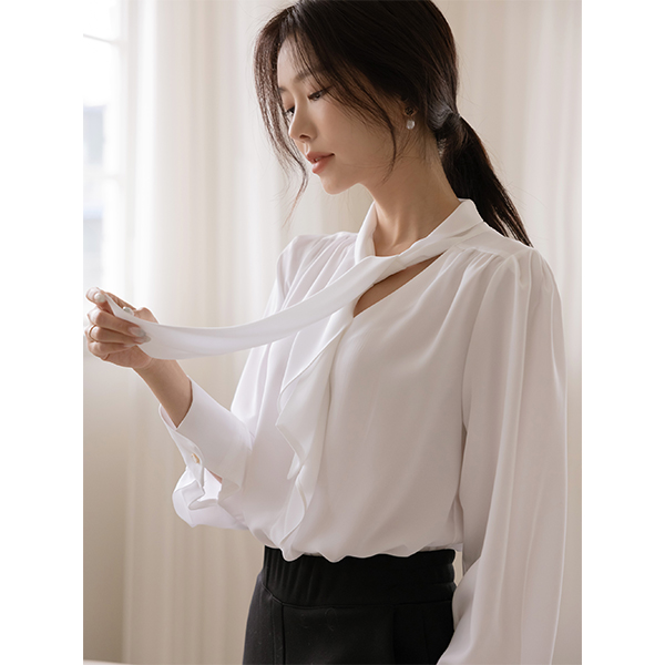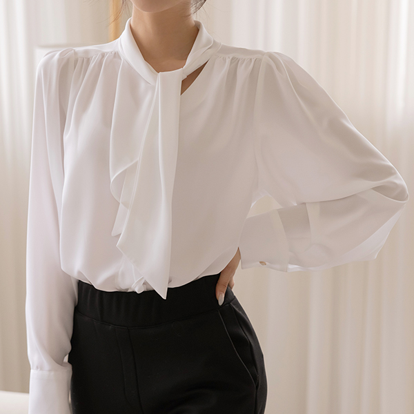 Peeling Soft Tie Neck Blouse