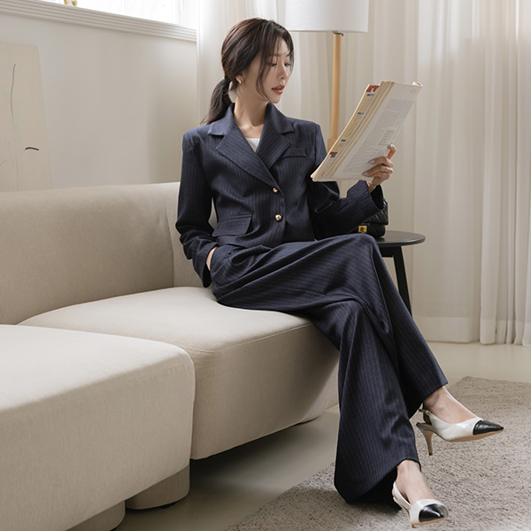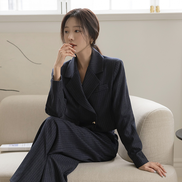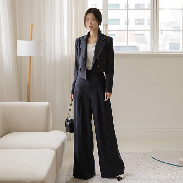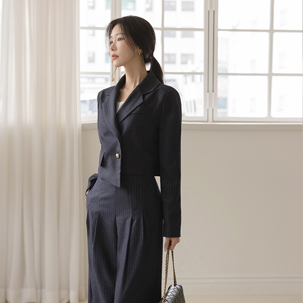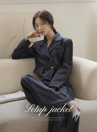 Stripe Unbalance Crop Set-up Jacket