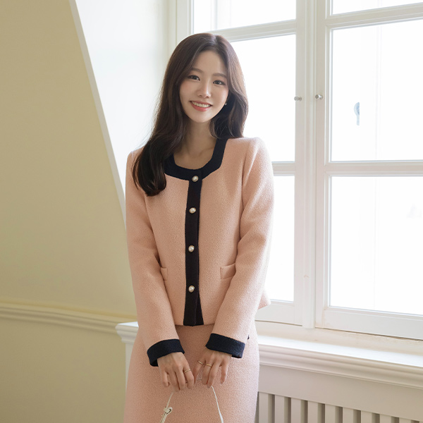Monica Color Combination Wool H-line Long Set-up Skirt