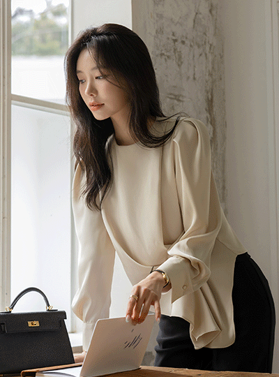 Skily Diagonal Wrinkles Puff Blouse