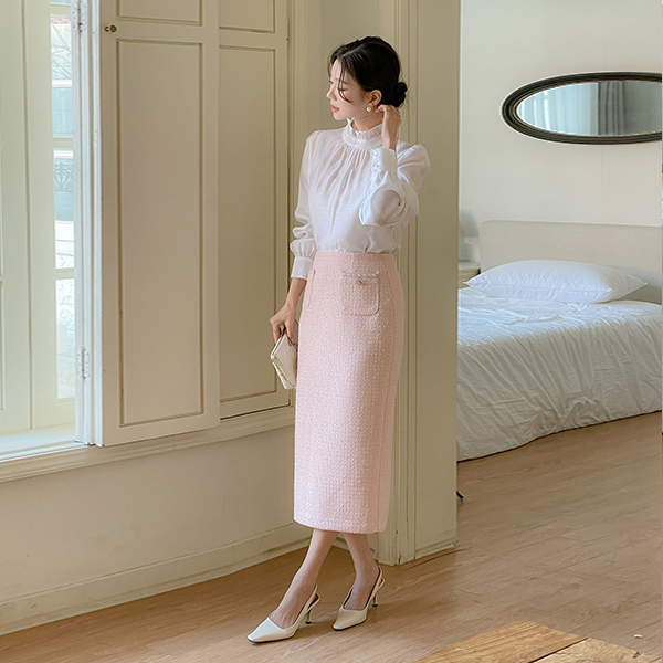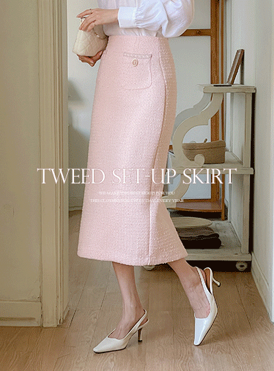 리앙 Pocket Wool Tweed H-line Set-up Skirt