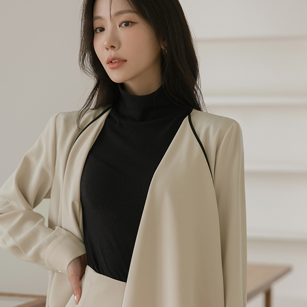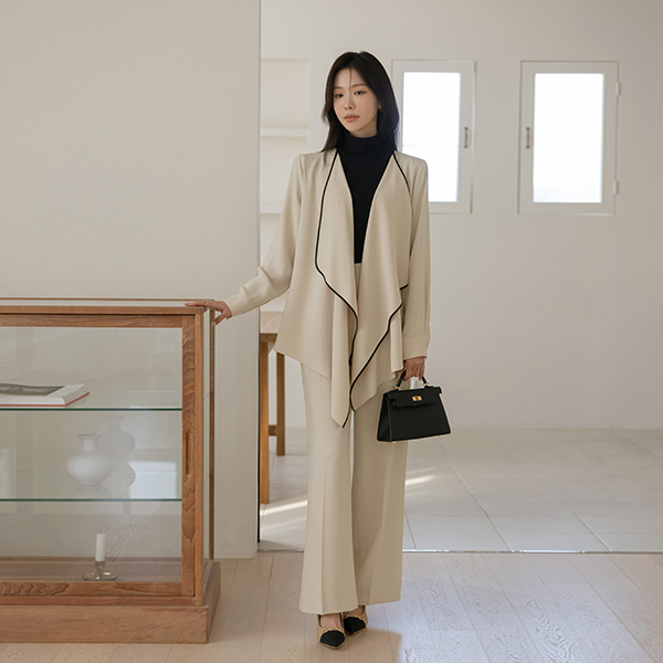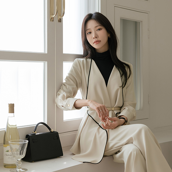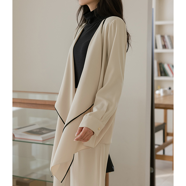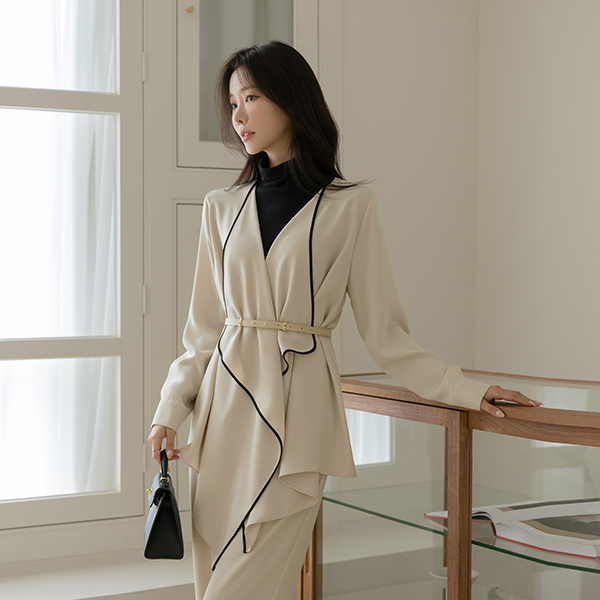 Elegance Color Combination Ruffle Soft Set-up Jacket(+Belt)