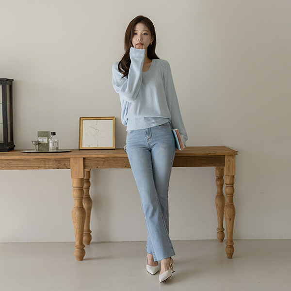 Length repair NO! Easy Span Denim Boot-Cut Pants (Short/Middle/Longver)