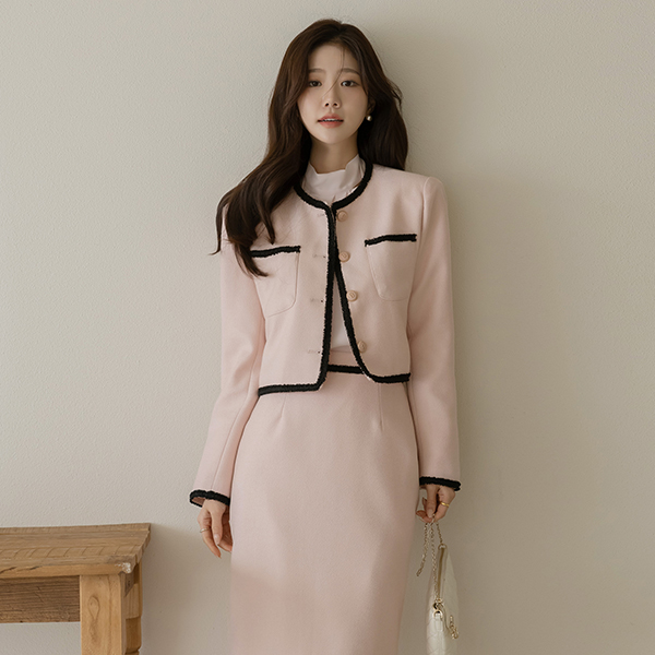 클라라 Tassel Color Combination Crop Set-up Jacket