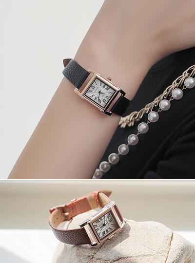Analog Square 다이얼 Cowhide Clock