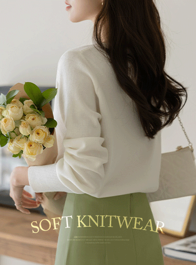slender UNeck Wool Soft Long-sleeve Knit