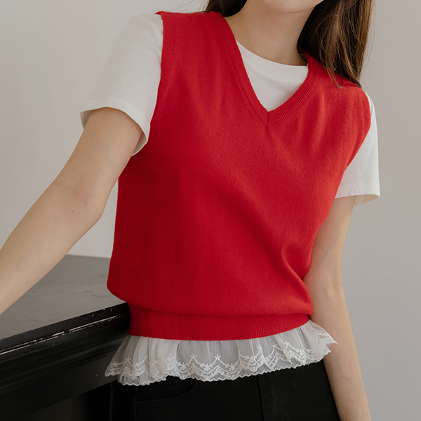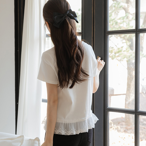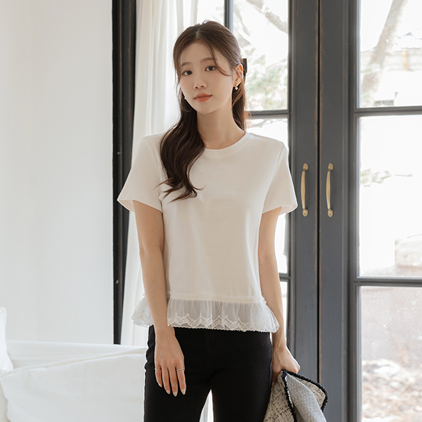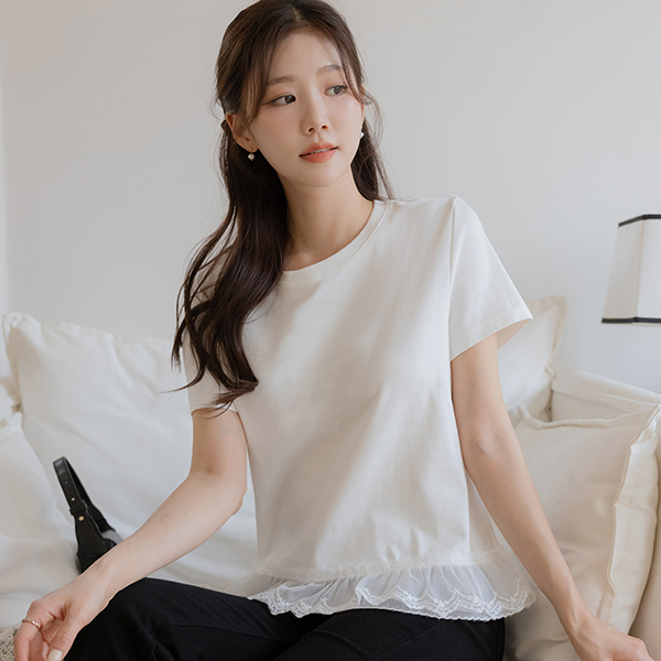 Lovely Hems Lace Short-sleeve Cotton T-shirt