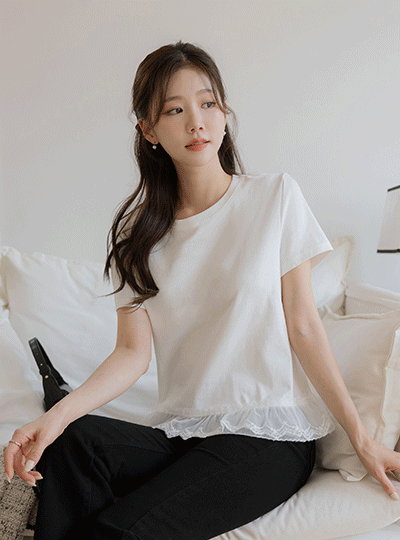 Lovely Hems Lace Short-sleeve Cotton T-shirt