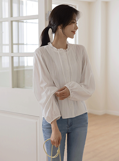 Pure Frill Neck Cotton Blouse