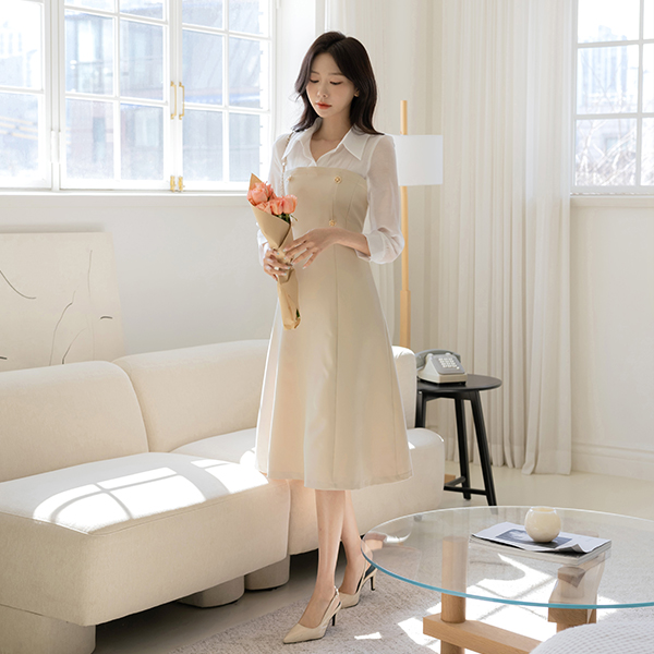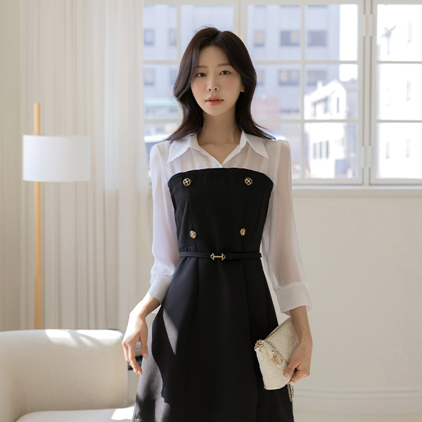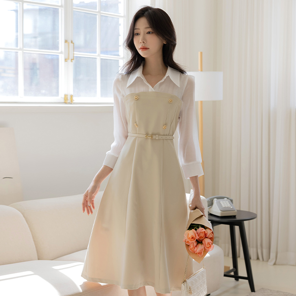 Luna A-line layered Dress 2type (+Belt)(Short/Longver)