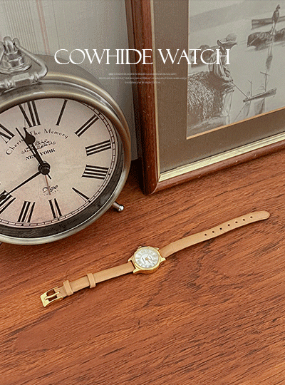 Gold Rounding Cowhide 손목 Clock