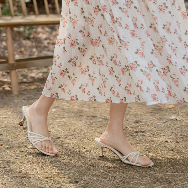 Round slender Strap Slippers Heels