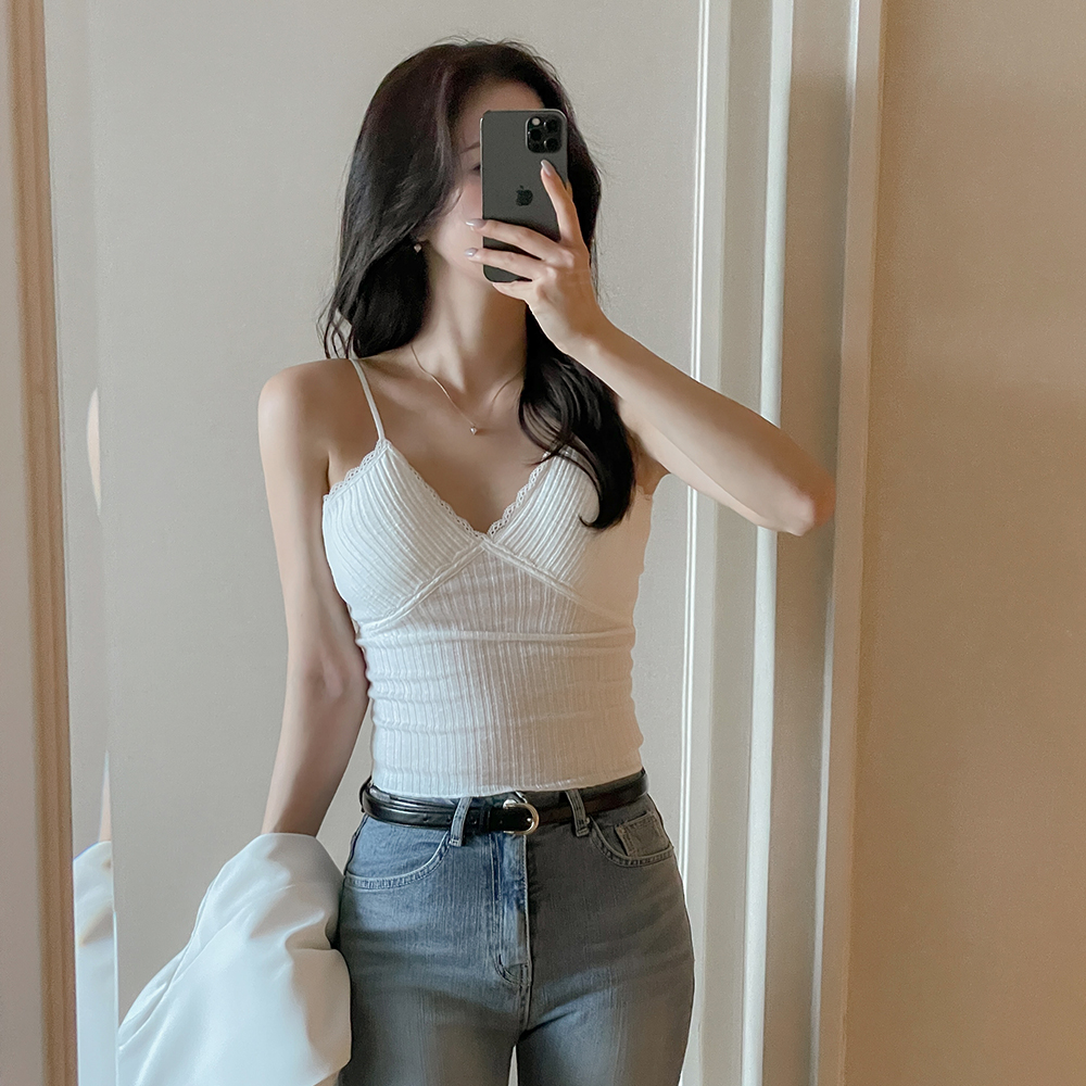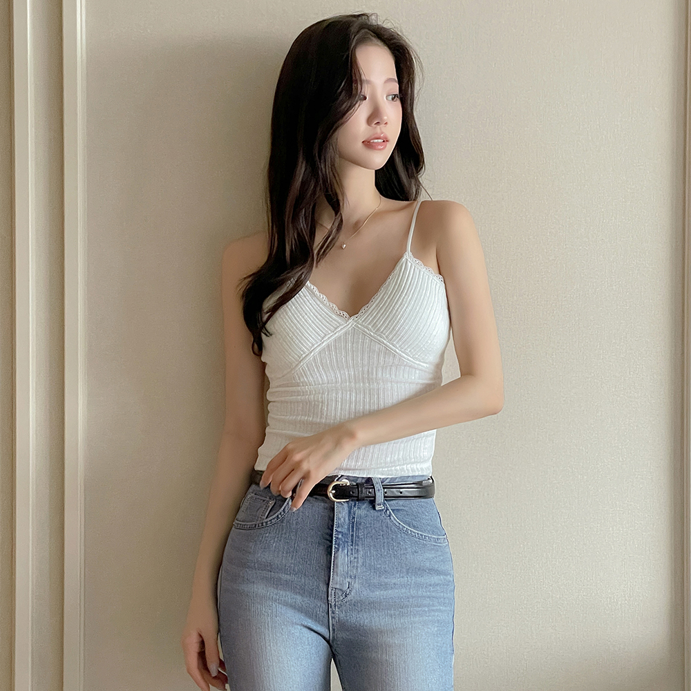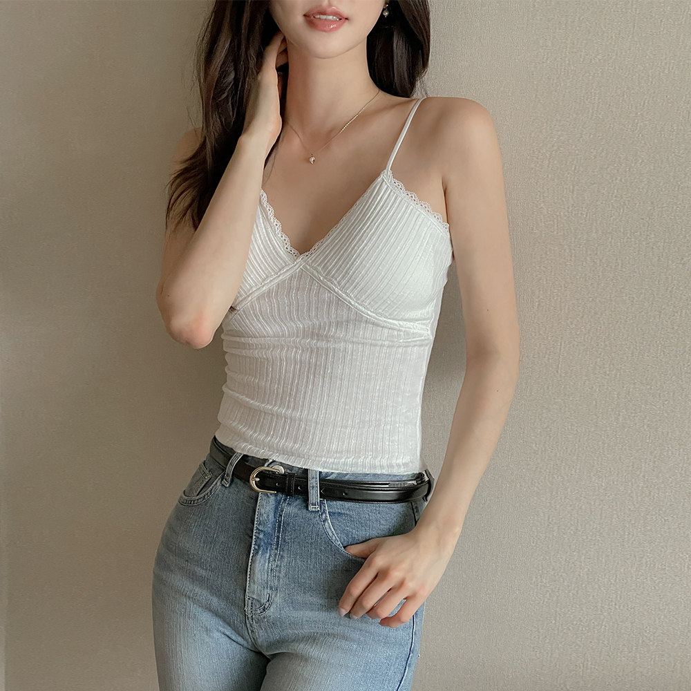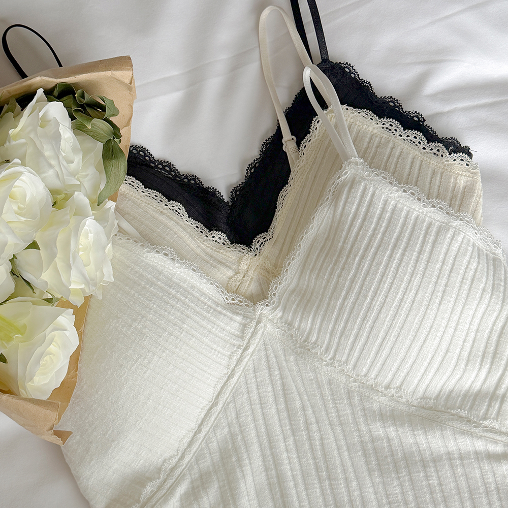 Feminine Corduroy Lace Cap 내장 Sleeveless shirts